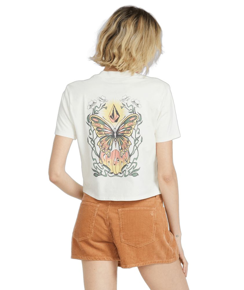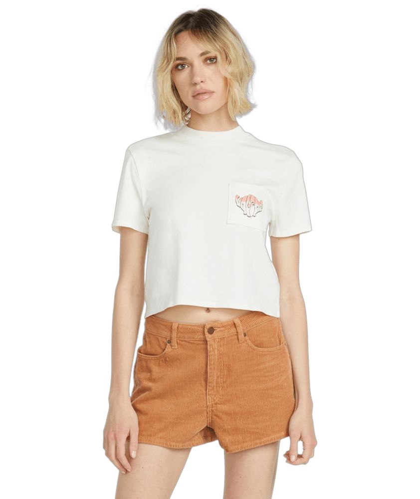 Dámské triko Volcom z organické bavlny v rovném střihu s potiskem na hrudi a zádech. Našívaná kapsička na hrudi. Složení materiálu: 100% bavlna. Gramáž 145g.