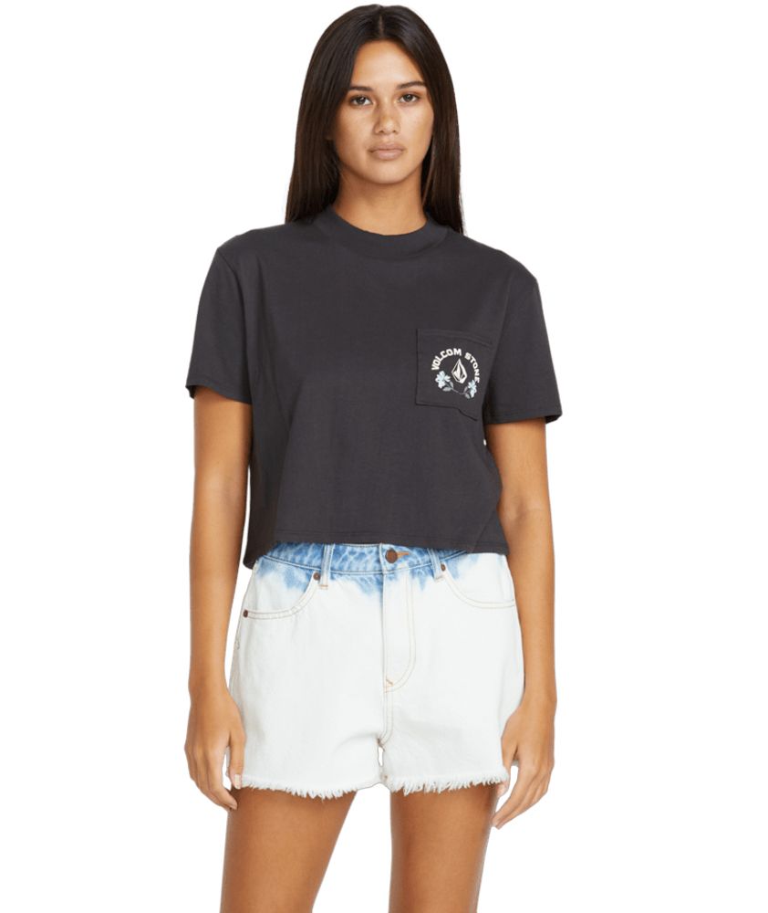 Dámské triko Volcom z organické bavlny v rovném střihu s potiskem na hrudi a zádech. Našívaná kapsička na hrudi. Složení materiálu: 100% bavlna. Gramáž 145g.